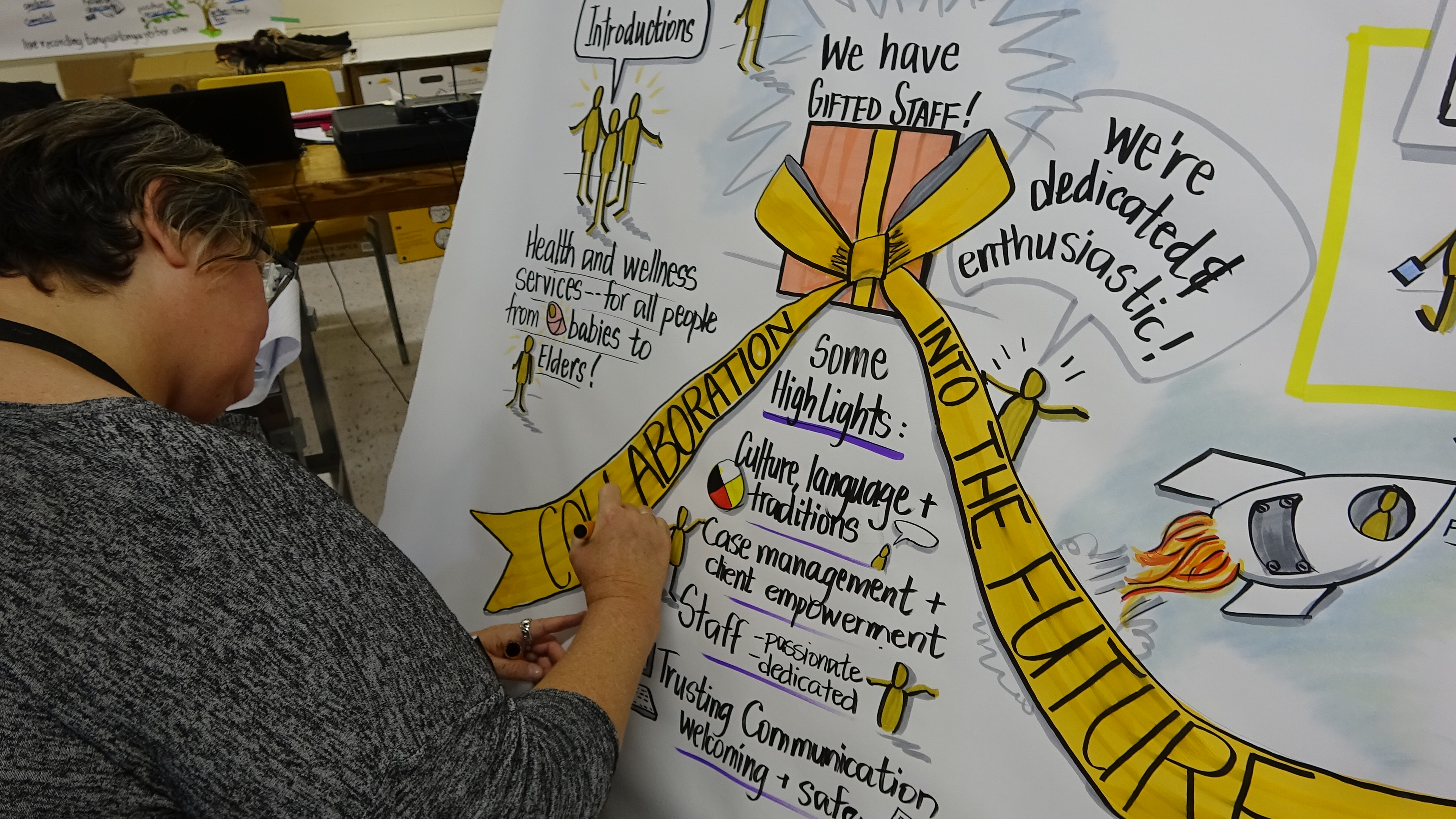 We work in and with communities to facilitate the enhancement and or creation of holistic services that are child, youth and family centered ensuring the best possible outcomes for resilient and healthy families. Our approach fosters culture and identify as foundational. We do this by coordinating and facilitating workshops bringing together service providers from all sectors to plan effectively for holistic models of service delivery.